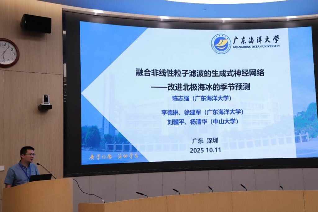 来自广东海洋大学的陈志强老师以《融合非线性粒子滤波的生成式神经网络——改进北极海冰的季节预测》为题,提出将粒子滤波与生成式神经网络相结合的方法,有效提升北极海冰季节尺度预测的不确定度控制与预测稳定性。